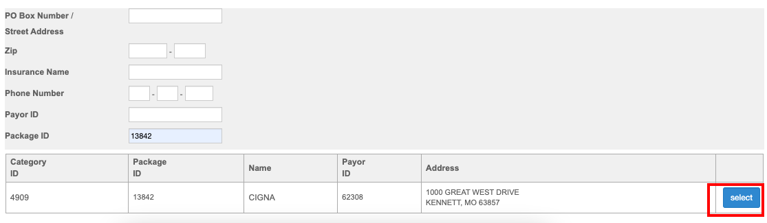 - Then click Select to add the Insurance.