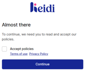 To start using the Heidi AI Scribe in your EHR, you only need to sign up once in your EHR.