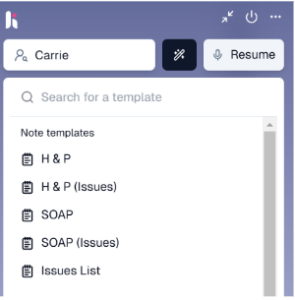 6. If the session is done, Stop the recording and choose the template from the predefined templates list to generate the note.