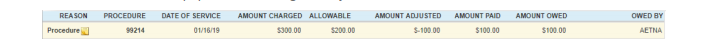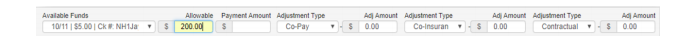 - Enter the allowed amount in the allowable field as seen in the EOB