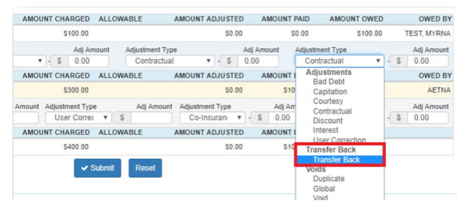 - Secondary Transfers – to move a balance from the primary to the secondary insurance