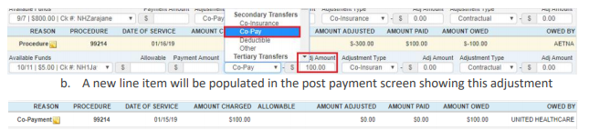 - Example – $100 is patient’s copayment, since patient has a secondary insurance, this will then be transferred to that insurance and not the patient by choosing Secondary Transfers
