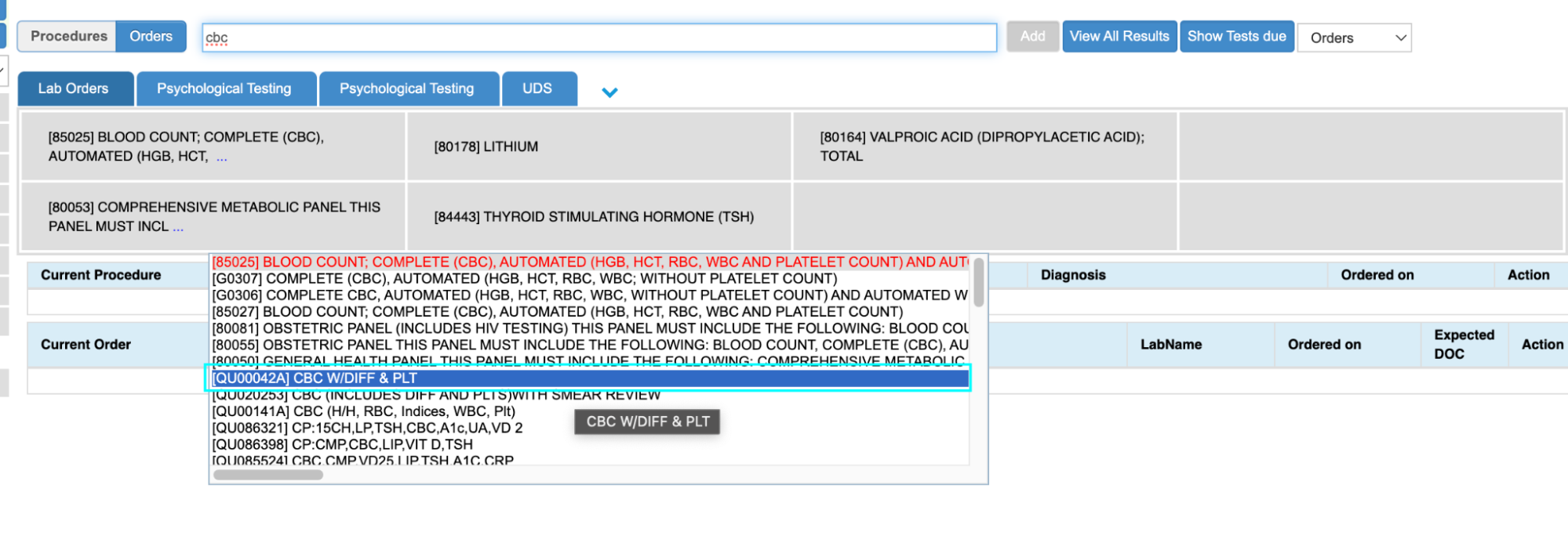 - All other lab tests should continue to be added as an order by using the lab facility-specific code.