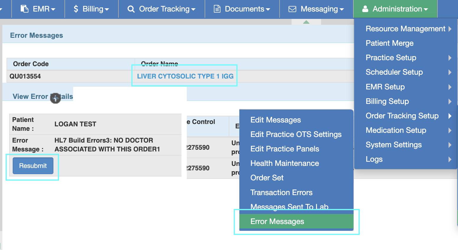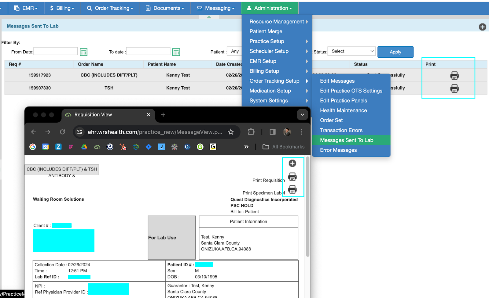 - Track requisitions by going to Administration > Order Tracking Setup > Messages Sent to Lab. This page refreshes every 5 minutes