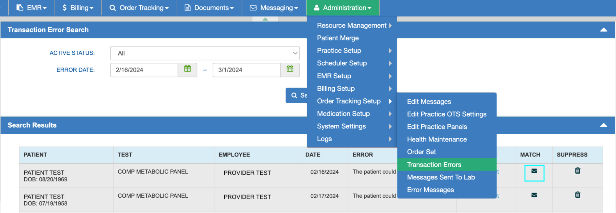 - Go to Administration > Order Tracking Setup > Transaction Errors