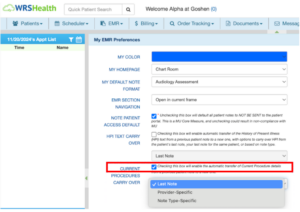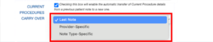To utilize the Current Procedures Carryover feature, it must first be enabled in your EMR Preferences.