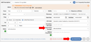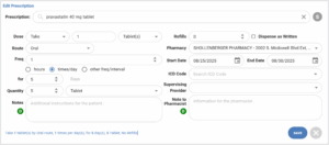 - In the Edit Prescriptions Page, providers can review and update any information in the SIG (i.e. adjust dosage, frequency, choose pharmacy, provide notes)