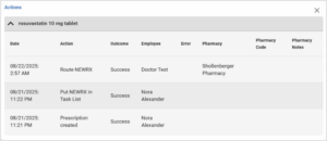 4. All actions, edits, and prescription details can be viewed here for review or auditing purposes.