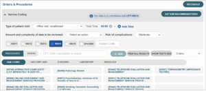 Once documentation is complete, click the Get E/M Recommendations button in the Orders & Procedures page.