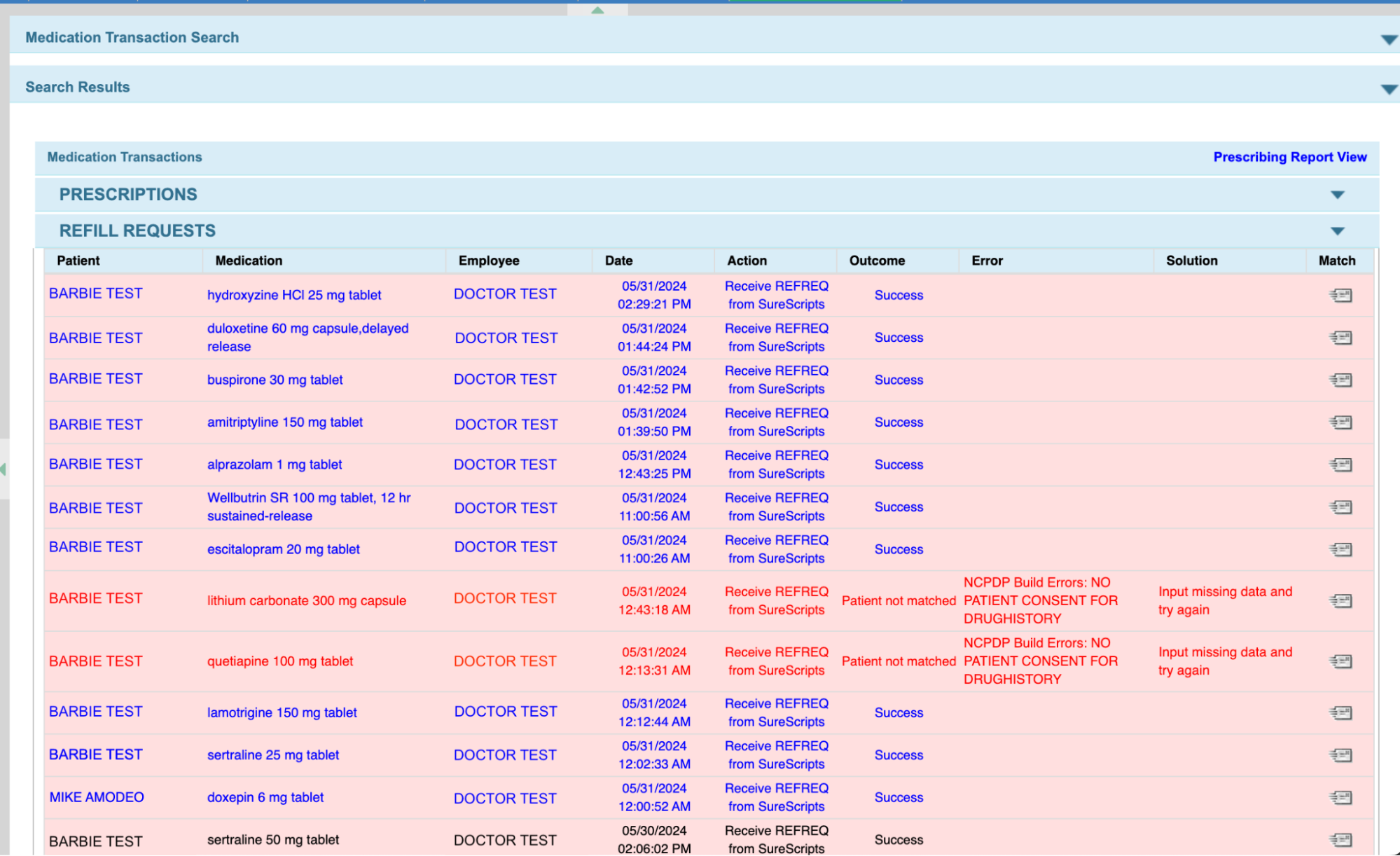 - Completed/Responded refill requests are logged in Administration > Medication Setup > Medication Management > Refill Responses.