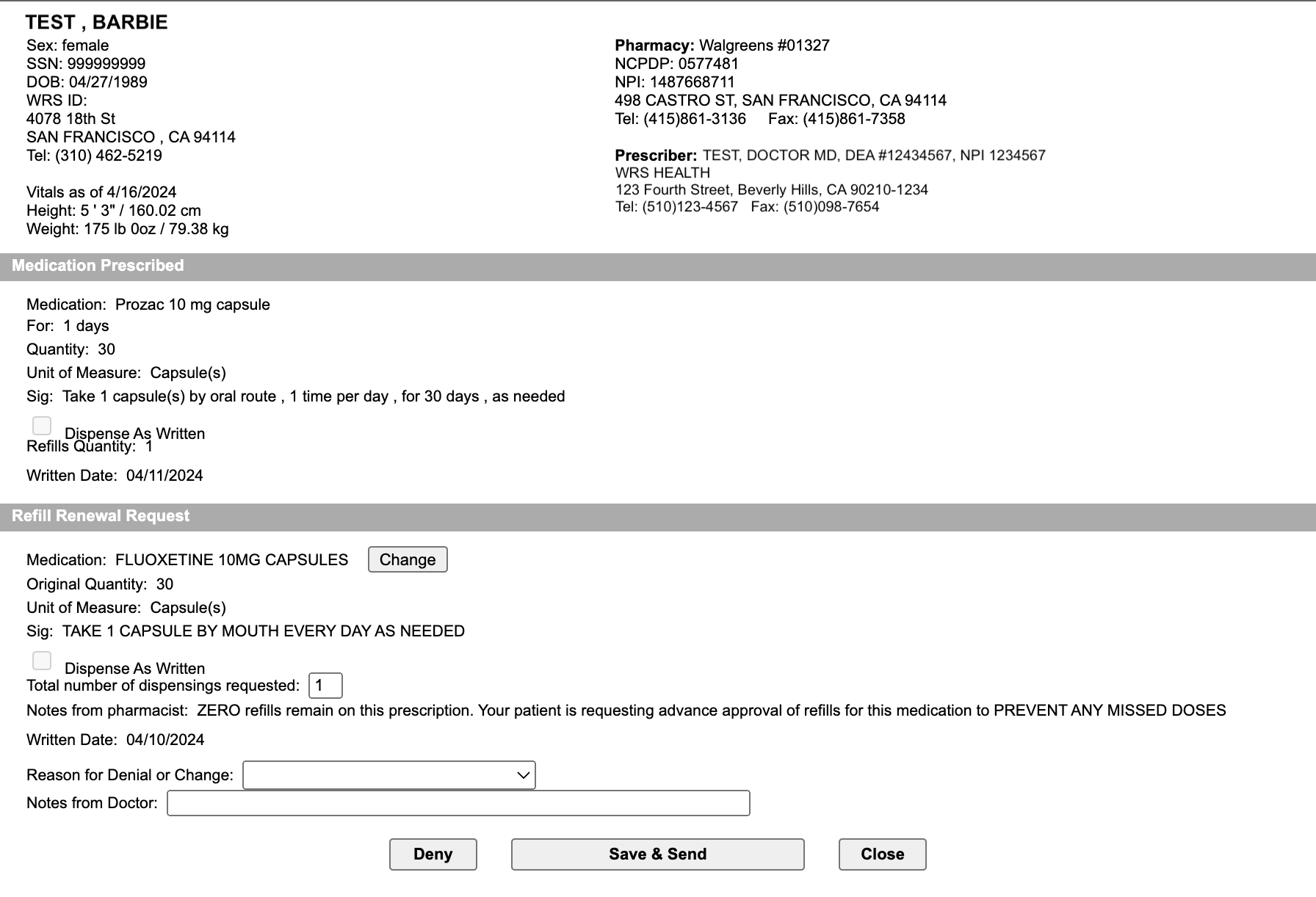 and pharmacy capability. - After reviewing the prescription, finalize by clicking Save & Send.