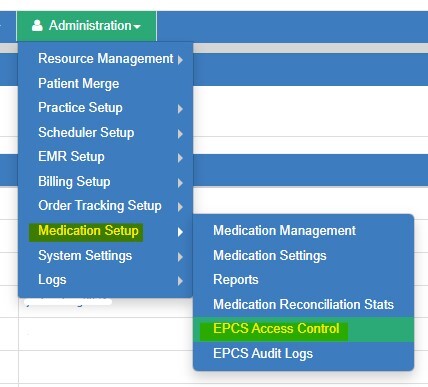 - Go to: Administration > Medication Setup > EPCS Access Control.