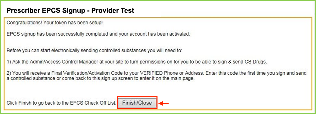 Congratulations! You have completed the EPCS Setup and Registration.
