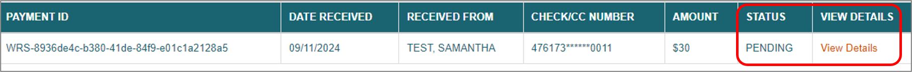 3. Review the details and check the payment status for each transaction.