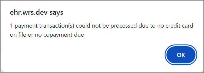 If a patient does not have a card on file, alternative payment methods may need to be processed individually outside of the Bulk Copayment feature.