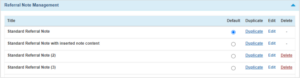 - On the Referral Notes Management page, you can view, edit, or duplicate the available templates by selecting the appropriate option next to the template you wish to access.