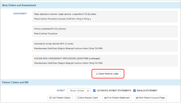 - When patient is checked out, the provider may send a referral letter through the Patient’s Hover Box.