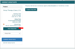 - Access the Group Note . Within the group note interface, click the View Group Note option.