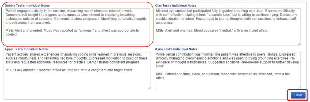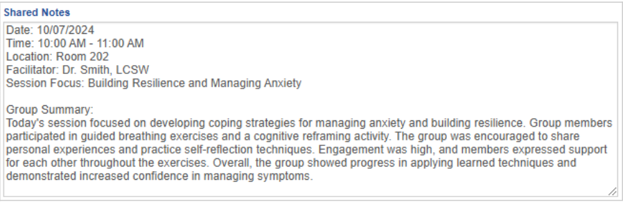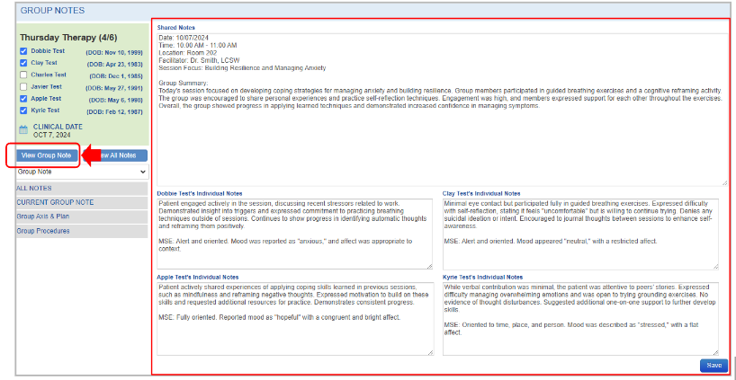 - Shared Notes and Individual Notes will appear in the Group Note section of the individual patient notes.
