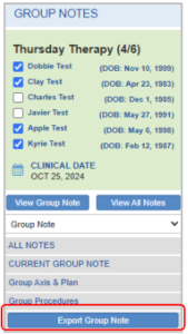 - Click the Export Group Note button to initiate the export process.