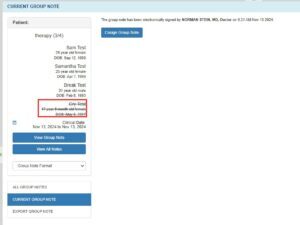 Important: After signing, the Group Note page will be locked and no longer available for editing. Any further edits or signing of individual notes will need to be completed within each patient’s individual chart.