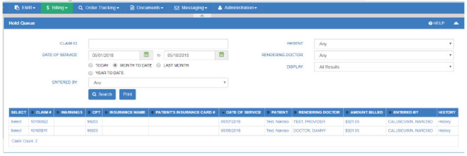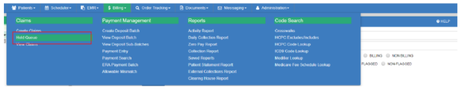 - Rejected claims and claims placed on hold will stay in the hold queue until worked by the biller