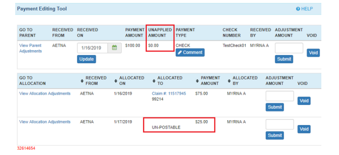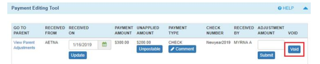 - Select the ‘Payment ID’ to pull up the Payment Editing Tool