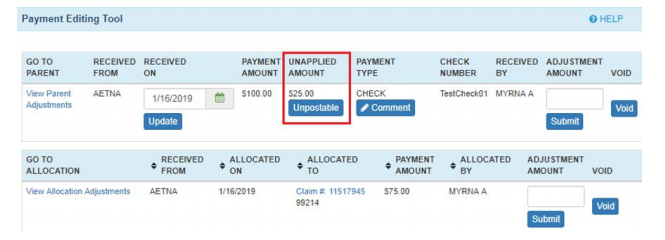- This button is utilized for any unapplied amount on the check which could be an incentive payment or a payment for a claim that not found in WRS