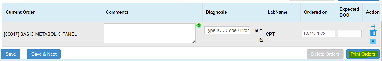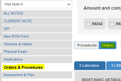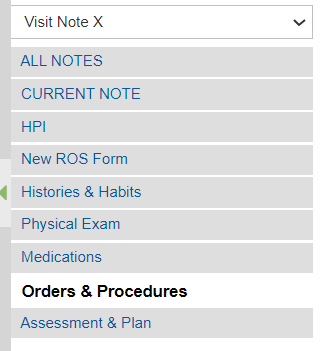 EMR Patient Note > Orders & Procedures Page.
