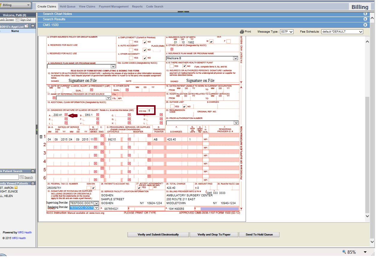 Box 21 of the CMS 1500 will switch from 9 to 10 October 1, 2015 indicating that ICD-10 is applied to the claim. In the event that you have to send ICD 9 codes on a claim you can just type in the 9 replacing the 0 and the codes will revert back to ICD 9