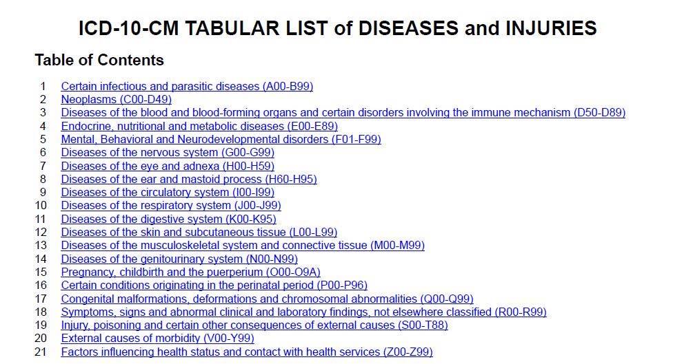 - ICD-10-CM TABULAR LIST of DISEASES and INJURIES