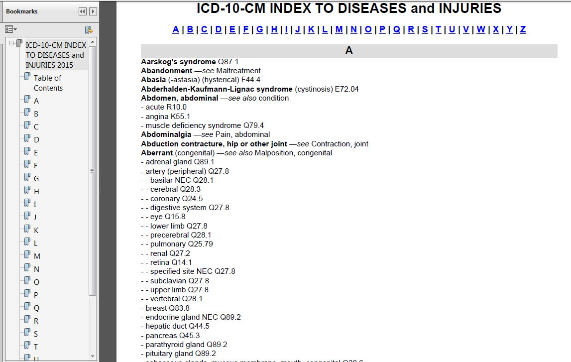 - The other document will list diseases alphabetically and by clinking on the correct letter link, will take you to those pertinent codes