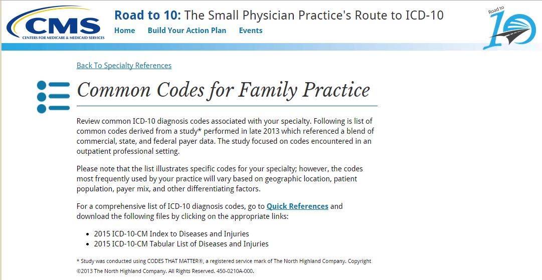 - Another good source of ICD-10 information from CMS is their webpage: Road to 10: The Small Physician Practice’s Route to ICD-10 at address: http://www.roadto10.org/