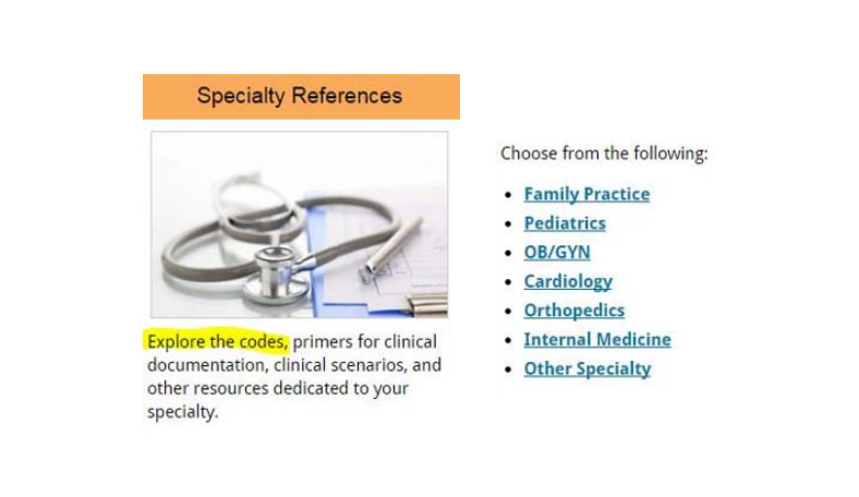 - There is a SPECIALTY SECTION that addresses specialty specific coding, as well as application within that specialty