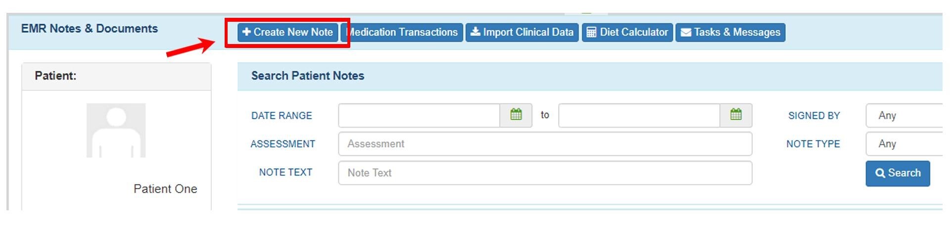 Option 4: Go to the Patient’s EMR All Notes then select Create New Note.