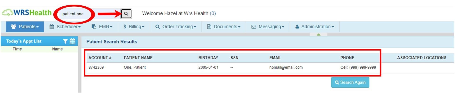 Quick Patient Search > Type the Patient’s Name.