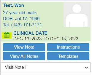 - If you will be creating notes after the actual appointment/date of service, make sure to change the clinical date by clicking the calendar icon within the note and choosing the corresponding date of service. Select Update to save the changes.