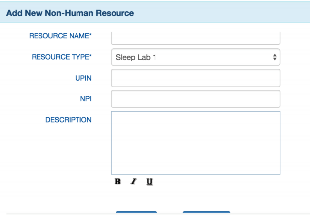 - Select the resource type, as the type you just created in Step 1. (UPIN, NPI, Description are all optional fields).