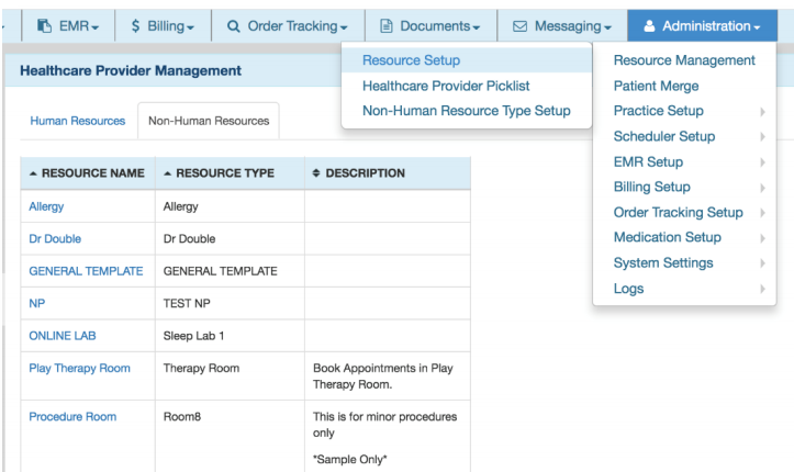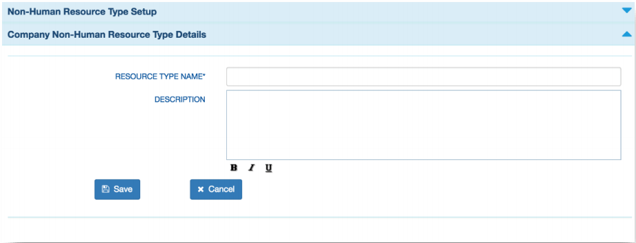 Administration → Resource Management → Resource Setup → Non-Human Resources Tab