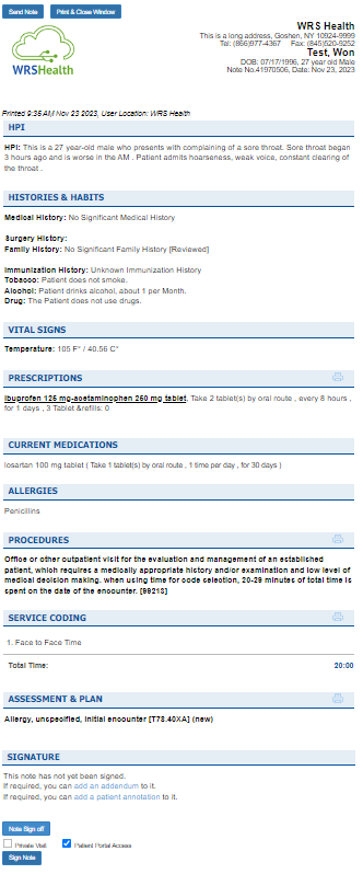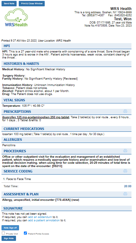 - Show RX Note to Pharmacist – If activated, this feature ensures that the narrative under Note to Pharmacist will be included in the note.
