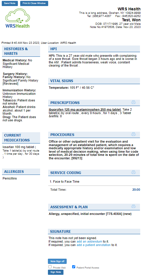 - Show Immunization History – if the feature is enabled, the patient’s Immunization history will be included in the note.