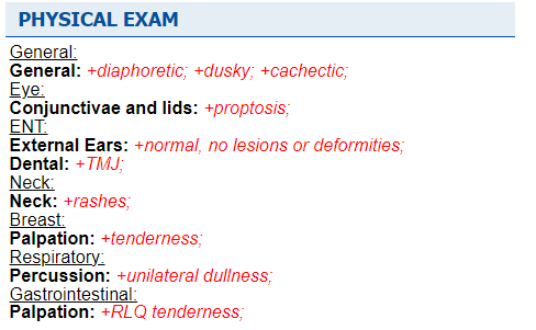 - Show Abnormal In Red and Italic Font – if the feature is enabled, the patient’s abnormal findings will be reflected in Red and Italic Font.