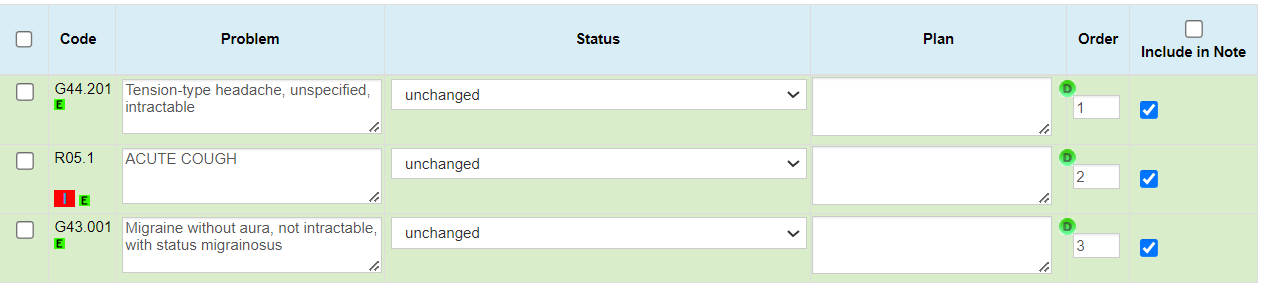 - Diagnosis “Include in Note” Carry Over – When this feature is activated, diagnoses that are marked for inclusion in the note will be automatically transferred to the next visit’s note.