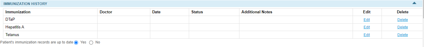 - Immunization History – will include Show Treating Provider and Show Date in the note if the feature is selected.