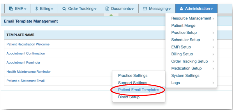 Administration → System Settings → Patient Email Templates