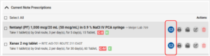 2. From the Current Note Prescription list, click “Send” (or select the send/envelope icon) to initiate the submission.