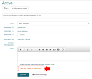 2. Locate the new controlled prescription task that has been assigned to you.