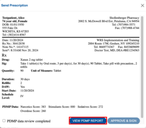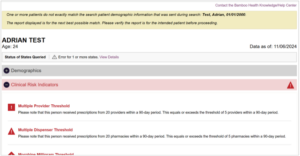 4. Click the VIEW PDMP REPORT to check and review the following:
