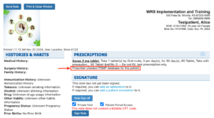 - When practice users view notes in the “View Note > Prescriptions” section, they will see the confirmation message, “Prescriber checked PMP database for this patient” displayed after all prescriptions.