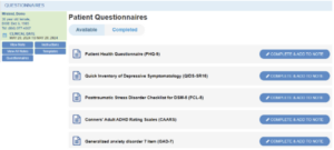 - In the Patient Questionnaires section, you will find two tabs: Available and Completed.